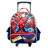 Kids size toddler Rolling Backpack (perfect size for the kids between 3 - 5 years old) Measures approx. 12"H x 9"W x 5"D telescope handle that raises 9" from the top, easy to maneuver includes: mesh pocket for water bottle, side pockets for convenient organization, and one big zipper pocket in the front, smooth rolling luggage style wheels. adjustable durable padded shoulder straps that tucks away, easy to clean and maintain.